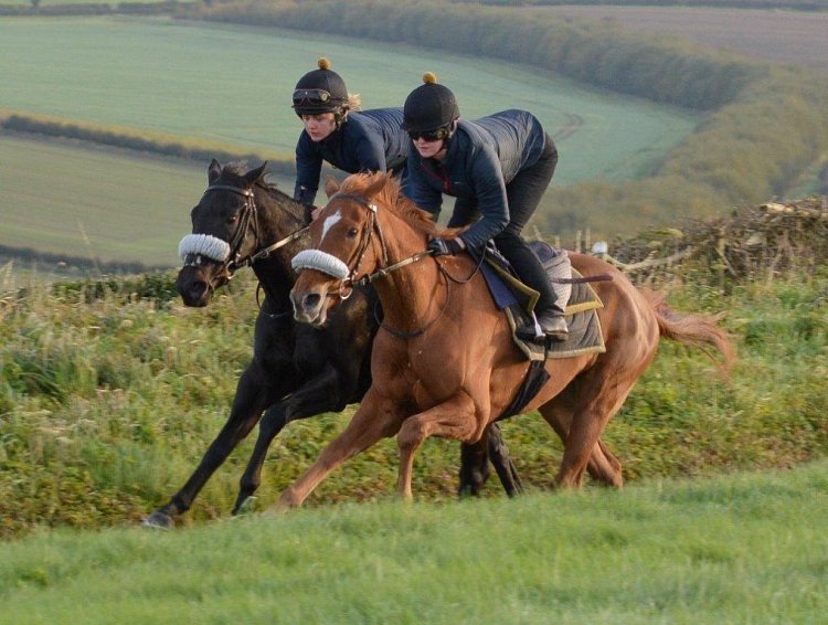Belle Meade training on the gallops at Andrew Balding's Spring 2018